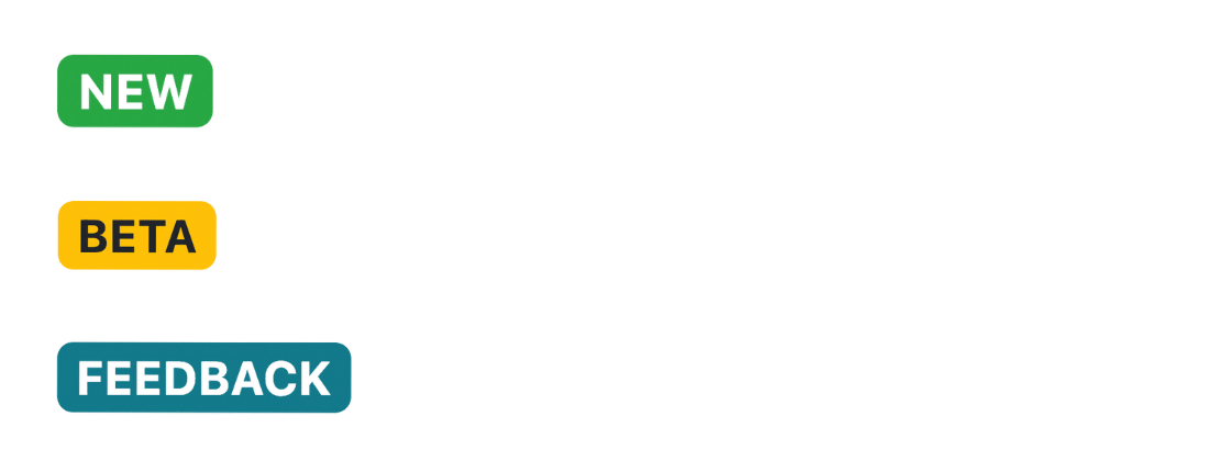 We understand that clarity and transparency are essential when you’re using our platform. To provide you with a better understanding of our features, we’ve introduced a green “NEW” label for freshly introduced features, a yellow “BETA” label for features that are actively being tested and subject to change, and a blue “FEEDBACK” label for when we’re particularly interested in gathering additional feedback on an existing feature. Our labels can be seen below:
